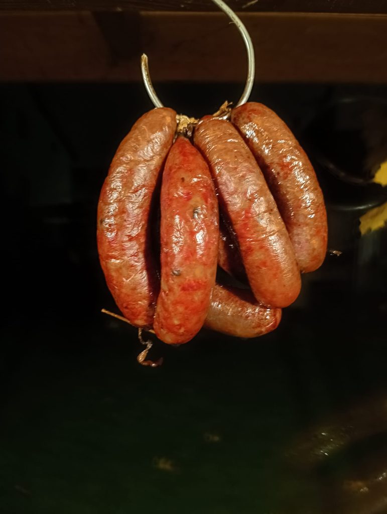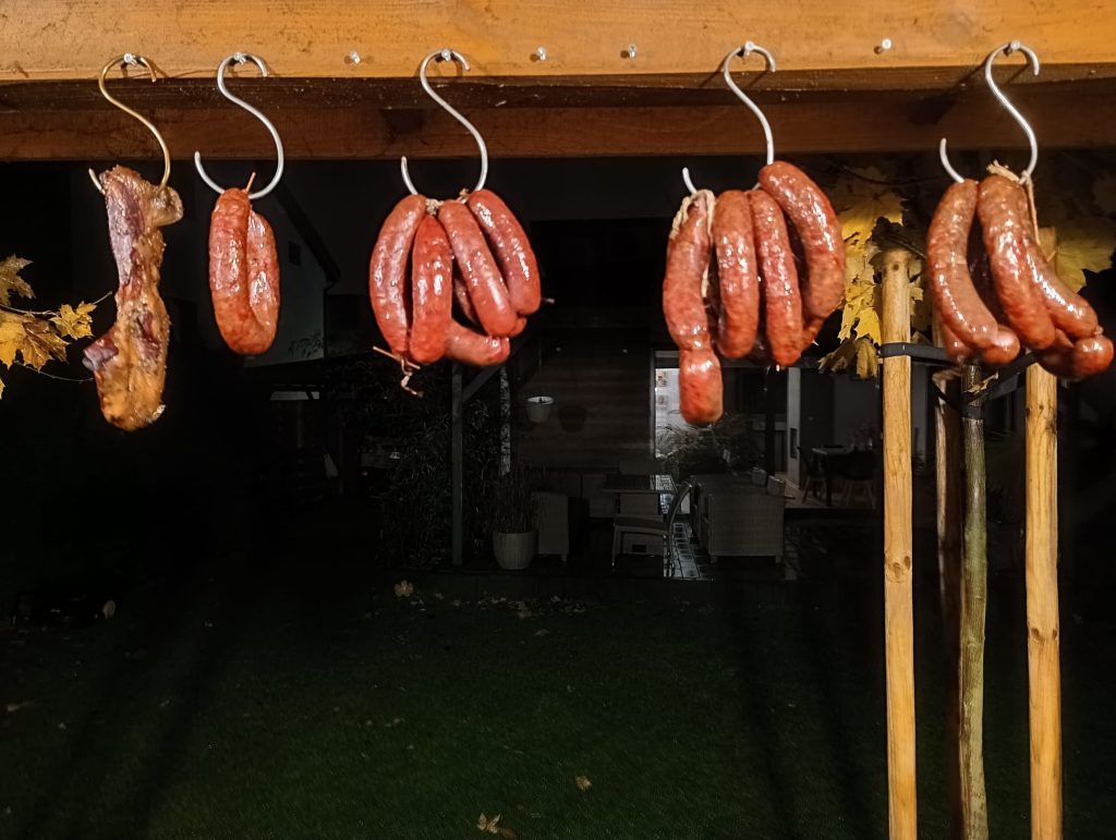 Następnie wkładamy do wcześniej wygrzanej wędzarni i osuszamy do momentu aż jelita będą suche w dotyku.